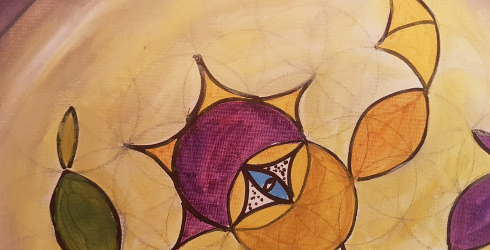 Am desenat floarea vieții, simpla, 19cercuri, asa cum o vezi in fundalul acestor tablouri, cu compasul si cu creioane colorate, timp de 7 ani. Au fost perioade in care desenam zilnic. Au fost perioade in care imi puneam intentiile zilnic. Am crescut usurel, ca o plăntuța firava, usurel dar sigur.